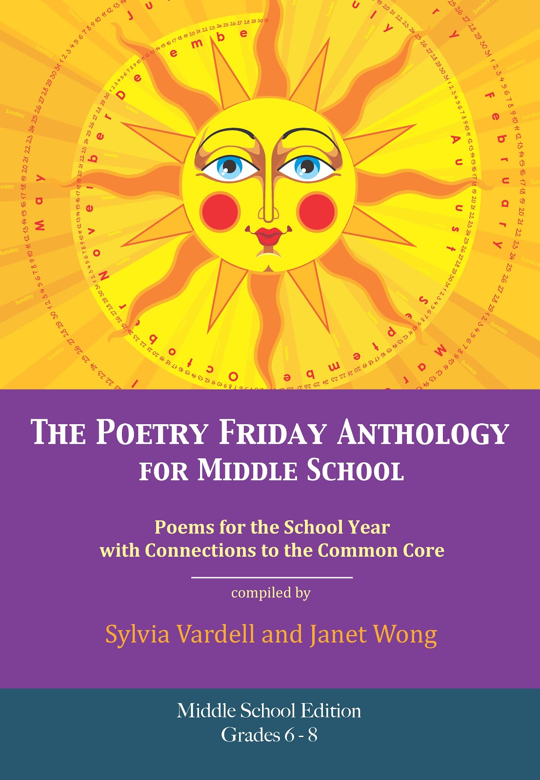 is here! And just in time for April and Poetry Month. This lively compendium of poetry expertly selected by Janet Wong and Sylvia Vardell has poems by 71 poets including Jane Yolen, Lee Wardlaw, Joyce Sidman, Marilyn Singer, J. Patrick Lewis, Jack Prelutsky, and Nikki Grimes. I am honored to be included among such esteemed poets, along with fellow Pencil Tips blogger, Mary Quattlebaum. Like the K-5 edition of The Poetry Friday Anthology, the middle school edition has a poem and quick lesson for every week of the school year. Also included are tips for sharing poetry in the classroom, quotes about poetry, and the Common Core Standards for grades, 6, 7, and 8. Having all this information in one book is a great timesaver for busy teachers. And there are so many poems inside which could serve as models to inspire student writing. In “Advice to Rapunzel,” Eileen Spinelli warns this fairy tale princess to “Be cautious and wise/when you let down your hair.” After reading this poem aloud, you could challenge your students to write their own poem to a fairy tale character. Julie Larios’ poem “The Perfect Day” or Irene Latham’s “Biking Along White Rim Road” could jumpstart student poems about a special day outdoors with a friend. And there is a menagerie of wonderful pet poems to serve as inspiration for students to write about their own beloved animals. Many of the poems in this book are breath-taking —excellent demonstrations of the quote on the back cover by Ralph Waldo Emerson who said, “Poetry teaches us the power of a few words.” Teachers might find themselves putting this anthology by their bedside for pleasure reading.Equally impressive are the “Take 5 Activities” accompanying each poem. They include tips for introducing the poem’s subject matter, reading it aloud, and pairing it with other related poems. Particularly helpful is Tip #4 which highlights a specific poetic device used in the poem. These tips also point out the structure of individual poems and how the poet used line breaks to convey meaning. Teachers looking for quick examples of alliteration, onomatopoeia, metaphor, or personification only need flip through a few pages before finding exactly what they need. As the introduction to