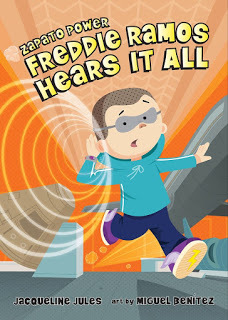 In Freddie Ramos Hears It All, Freddie must adjust to the thrill and the challenge of having super hearing in addition to super speed and super bounce. He goes to a space museum with his class and realizes that he can overhear conversations everywhere. Should he help the museum guards find a lost child? Should he help a woman who dropped her bracelet? Freddie has a big heart and a thirst for being a hero. With super hearing he can find many more opportunities to use his super hero powers. He can also find opportunities to eavesdrop. Should he be listening through his friend's door? What is the line between being a snoop and a super hero?