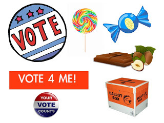 Since there are so many different kinds of candy, you could have primary elections to select candy candidates. Or you can simplify the process and offer three choices.The important thing is to get students thinking about what goes into a campaign and attracting voters. It takes more than artwork, it takes poetry in the form of slogans.