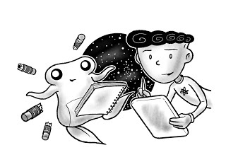 Bob is an ordinary kid who finds himself having to go to school in the most terrifying place he can imagine: outer space! Luckily he makes friends with a lost little alien named Beep, and together they face all the usual school challenges (tests, too much homework, bullies) and the not-so-usual (lack of gravity, black holes, giant space spiders). You can read all about their adventures (Bob keeps a journal and Beep draws the pictures) and use the following prompts to create your own!