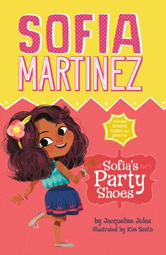 In my new title in the Sofia Martinez series, Sofia’s Party Shoes, Sofia is so excited about her new white shoes that she disobeys Mamá. Instead of keeping her party shoes clean and safe in their box, she wears them to her cousins’ house where they meet an unhappy accident. Sofia must face the consequences of her actions and wear the stained shoes to her friend Liliana’s quinceañera anyway. At first Sofia is grumpy, certain that she can’t have a good time. But as the party progresses, she learns that fun does not require the perfect outfit.