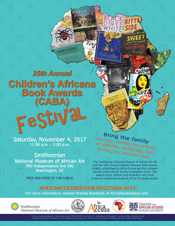 Ten previous winners are also attending the dinner, including Kathleen Wilson winner of the first CABA, five-time CABA winner E.B. Lewis and two-time winners Liz Zunon, Baba Wague Diakité and Ifeoma Onyefulu. Ntshadi Mofokeng, representing the NGO Equal Education will be coming from South Africa, author Manu Herbstein will be traveling to the celebration from Ghana, Adwoa Badoe from Canada and Janice Warman from the U.K. Click here for tickets and more information.