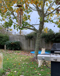 It started with a squirrel. Ryder was just chilling in the backyard with me and Koda, and then a squirrel jumped into the maple tree, and Ryder’s radar ears went up as she zeroed in on the squirrel like a TIE-fighter pilot in Star Wars. Her back straightened like it was full of titanium rods. It was really tight! She approached the tree one foot at a time.