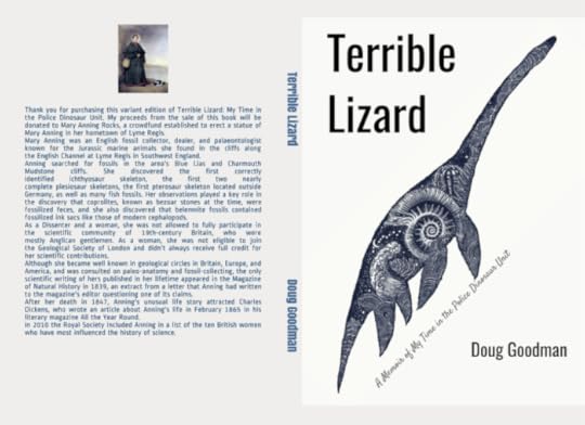 I created a unique variant cover to the paperback version of Terrible Lizard. I love it! While there are no plesiosaurs in Terrible Lizard, the cover echoes Mary Anning’s work discovering fossil marine life. She discovered both skeletons of plesiosaurs and ammonites on the Jurassic Coast. I only intend to make this cover available through February 8. I will order 5 copies, which you can get your hands on if you are located in the US. I am selling them for $20 each. Each one will be numbered and signed, as well as include on the back cover a painting of Mary Anning and a description of her life and significance.