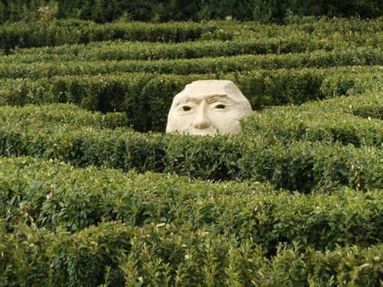 I usually think of fall as the time to begin something new, to learn something new, to recalibrate--to maybe consider doing something different. It's the unsettled but anticipatory feeling I felt as a kid. But it's now June, not September, and I feel that need to make those changes now. I liked this picture of the head trying to see over the top of the shrubs--to see the path out of a labyrinth.