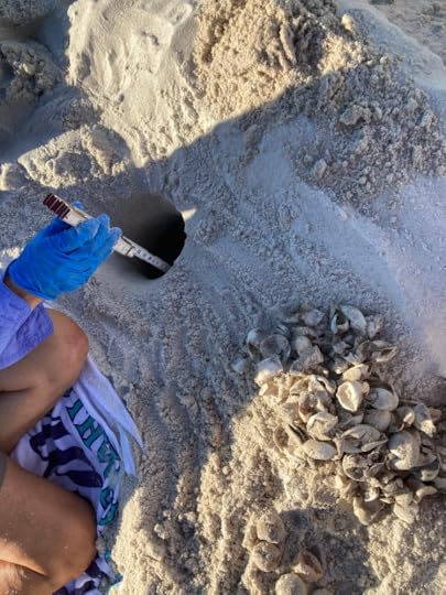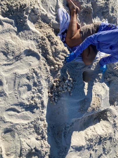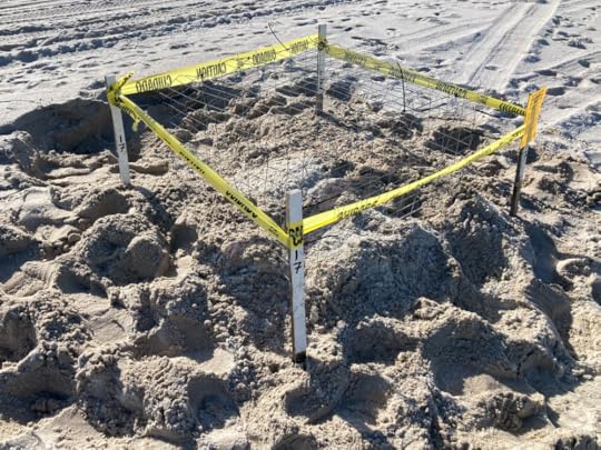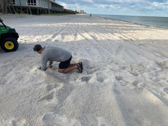 Monitoring these nests became a problem, however, with Hurricane Idalia last month. While we didn't experience the violence of those situated further north in Florida, we did have the storm surge, which wiped out all the cages and markers of all those remaining nests, except the ones closest to the vegetation and highest on the shore. There is no good way to determine the location of those remaining nests, as even when general locations are recorded, and even with GPS, it's not precise. It is generally possible, however, to see when a nest has hatched as the sand will be disturbed, with a rain-like pattern appearing on the sand. However, the nest is not excavated until 3 days later, allowing time for any possibly remaining eggs to hatch.