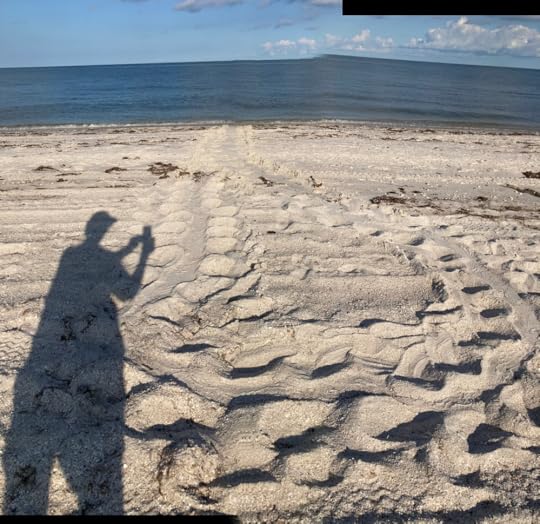 I admit to being mesmerized by the life of sea turtles--their nesting habits in particular, and primarily the Loggerhead turtles who return every year to our beaches here in southwest Florida, along the eastern shore of the Gulf of Mexico. Nesting began mid-May, and the last nest was logged on my stretch of the beach on July 31st. There had been some concern as to how Hurricane Ian of last fall might have altered the nesting habits, but this was actually something of a record year with something over 325 nests on the 5-mile stretch of beach where I walk. Pictured below is the typical cage, which extends approximately 18 inches into the ground to prevent predators--especially armadillos--from getting to the eggs. Aside from the tracks leading up to the nest, the nest is identified by the slight mounding that occurs in the center of the nest from the mother's kick-back of sand to cover the nest. But before the cage is placed, the staff actually digs down into the suspected area to be sure there actually is a nest.