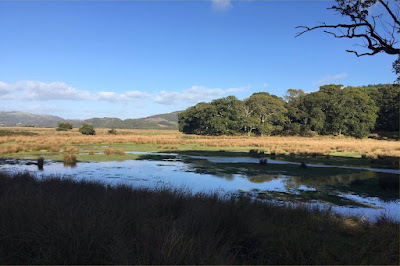 Anyway last week, in an effort to get untangled from my messy mid section, I took an afternoon out do to a recce of the site. I know the reserve well but hadn't looked at it with a writer's eyes before. As the photos show, it is a beautiful and - nowadays at least - tranquil place. From the bird hide of Domen Las, where the northern palisade wall ran, I got a real sense of what my characters would have seen and felt looking out over the water towards Gwynedd from this very same spot, almost 900 years ago.