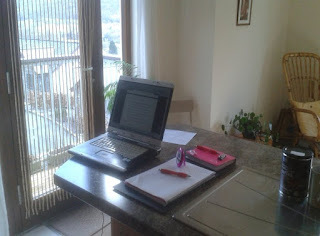 On the domestic side, I recently finished a work contract and went straight onto two others, both part time so as to fit in around my writing schedule. I've also been painting my flat during the weekends and now have a bright yellow study in which to work. Typically, though, I still write at my breakfast bar...