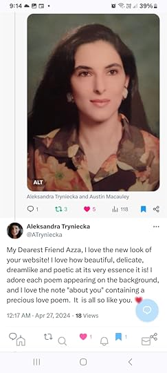 My fellow authoress and dearest friend Aleksandra Tryniecka wrote on X (twitter) two splendid and heartwarming short reviews on my updated official poetry website.