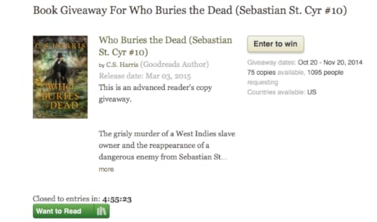 I've decided to do the ARC giveaway for WHO BURIES THE DEAD after Christmas, when life will be more sane. Hope that doesn't disappoint anyone too much. I'll be putting up another post soon, I promise! Now back to work...