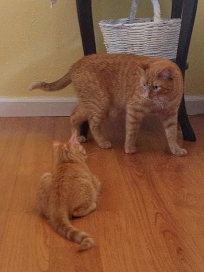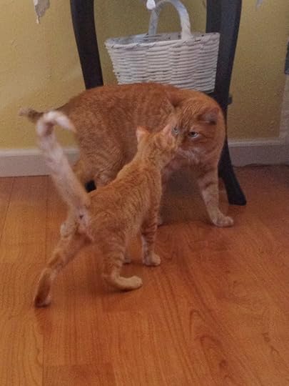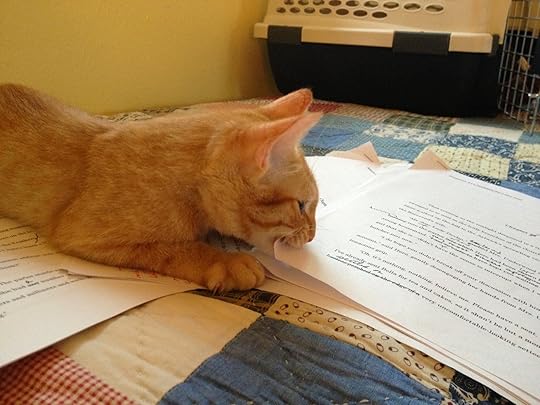 And then, probably because I was so stressed, I came down with a nasty respiratory infection. (And don't even get me started on my mom's house!) Hopefully things will sort themselves out in a few days. In the meantime, that's a picture of Indie eating the manuscript for Sebastian # 11. Yes, he still doesn't have home of his own, and this manuscript still doesn't have a title. Maybe September will be better.