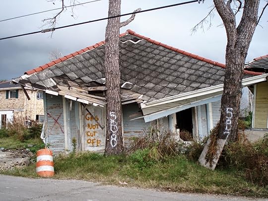 She didn’t know how to gut a house with a wrecking bar or hang and finish drywall. She didn’t know—reallyknow—just how thin the veneer of civilization is, how quickly so many things she once took for granted--food, gas, police, firemen--could be torn away. Can be torn away. She’d never sat at the bedside of a loved one dying in a hospital with boarded up windows and no laundry service. She’d never had to bury someone at a cemetery in a small town up the river because the family mausoleum was still under water. She’d never looked at mile after mile of destroyed houses for so long that they started looking normal.