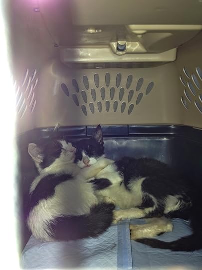 He came to us on my birthday, in September. A heartbreakingly skinny jumble of skin and bone and dirty fur that weighed barely a pound despite being six months old, he’d been born feral with cerebellar hypoplasia, which made it hard for him to walk or even stand for long without falling over. I didn’t want to take on such a huge responsibility, didn’t want any more cats. But I couldn’t leave him and his sister to die miserable deaths, so we trapped them and brought them home.