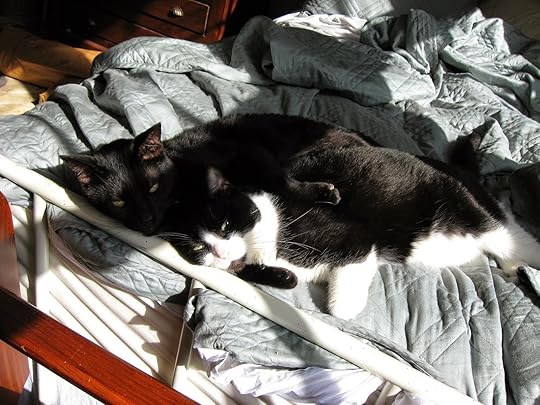 She'd seemed very lethargic in the week or so before Banjo died and actually perked up a bit after he was gone. We realized she must have known he was dying and been depressed because of it. But there's no denying a spark has gone out of her. It isn't just that she's alone now. She was always the timid one and leaned heavily on Banjo for moral support. He was the calm one, the brave one, the one who bathed her face and neck every day and reassured her when things were scary. Now she's lost that, and she's adrift.