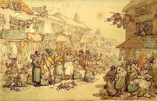Read the accounts of Regency (or Georgian or Victorian) men and women sliding into poverty, and their descent is inevitably marked by visits to old clothes dealers. A nice gown could be exchanged for an not-so-nice gown, with the difference in price going to buy another few days' food and lodging. And when that money was gone, the unfortunate would find themselves back at the old clothes sellers, with the not-so-nice gown being exchanged for something even less respectable--and so on, until one was reduced to the worst imaginable rags. At that point, you starved.