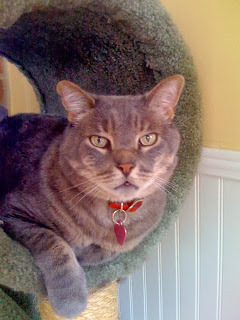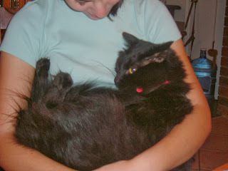 First, the good news: Huck is through his nasty four week course of antibiotics and is getting better (and feistier) every day. As for everyone else, Angel has decided we don't love him anymore because we only give him tasteless food to eat and shove medicine down his throat every night; we've decided to let nature take its course with Baby, whom we're hoping still has some good months ahead; Thomasina will be going back to the vet soon for more tests; and the kittens... Well, the kittens have unfortunately suffered what looks like permanent neurological damage from a bad reaction their shots and need to be hand fed and given physical therapy daily. I don't have a life, I have sick cats...