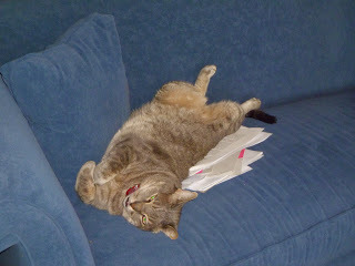 As he once "helped" my mother garden, Angel now "helps" me produce my books. He sleeps on my chapters. He sprawls half on my lap and half on my computer table when I'm trying to type. He lays on my right arm or bats at my hand wanting pets while I'm trying to write with a pen. He's fifteen years old, grumpy and opinionated and intensely affectionate, and I love him dearly. And yesterday I learned that he is in stage three renal failure.