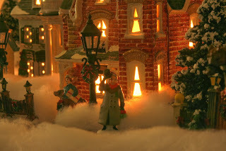 It was so late, I didn't put my village and train at the base of the tree this year. But I did set up the one on the buffet...
