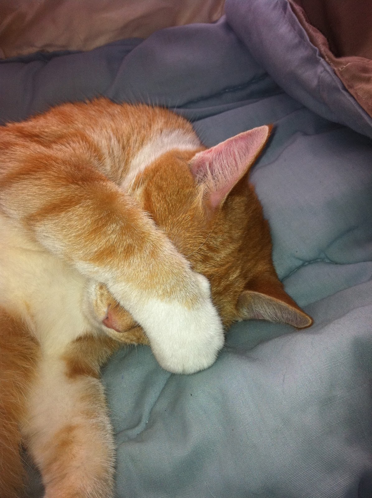 First, an update on Peanut: She's still with us, and while I don't want to jinx anything, she seems to have turned a corner. She's now eating on her own and is bathing herself, and we've been able to stop the subcutaneous fluids. It's been a hard (and expensive!!!) two weeks, and we're still not relaxing entirely, but we're hopeful. She also now officially hates my guts.