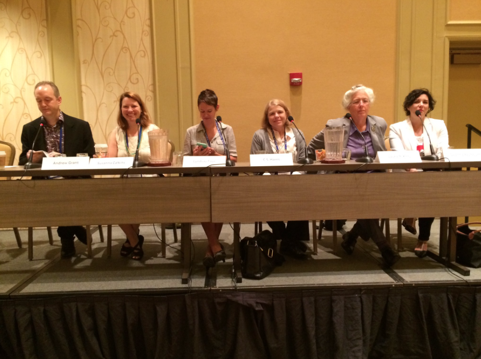 Bouchercon was fun but a bit hectic, and marred by the fact that the hotel had a bad case of mold in their ventilation system. Katrina left me with mold-agrevated adult-onset asthma, so that's part of why I've been missing the last few weeks. Anyway, my panel was great, and Andrew Grant proved to be a fantastic moderator. But what I want to know is, Why do I look like a little kid in this picture? Am I really this short?! Or was everyone else on that panel tall?