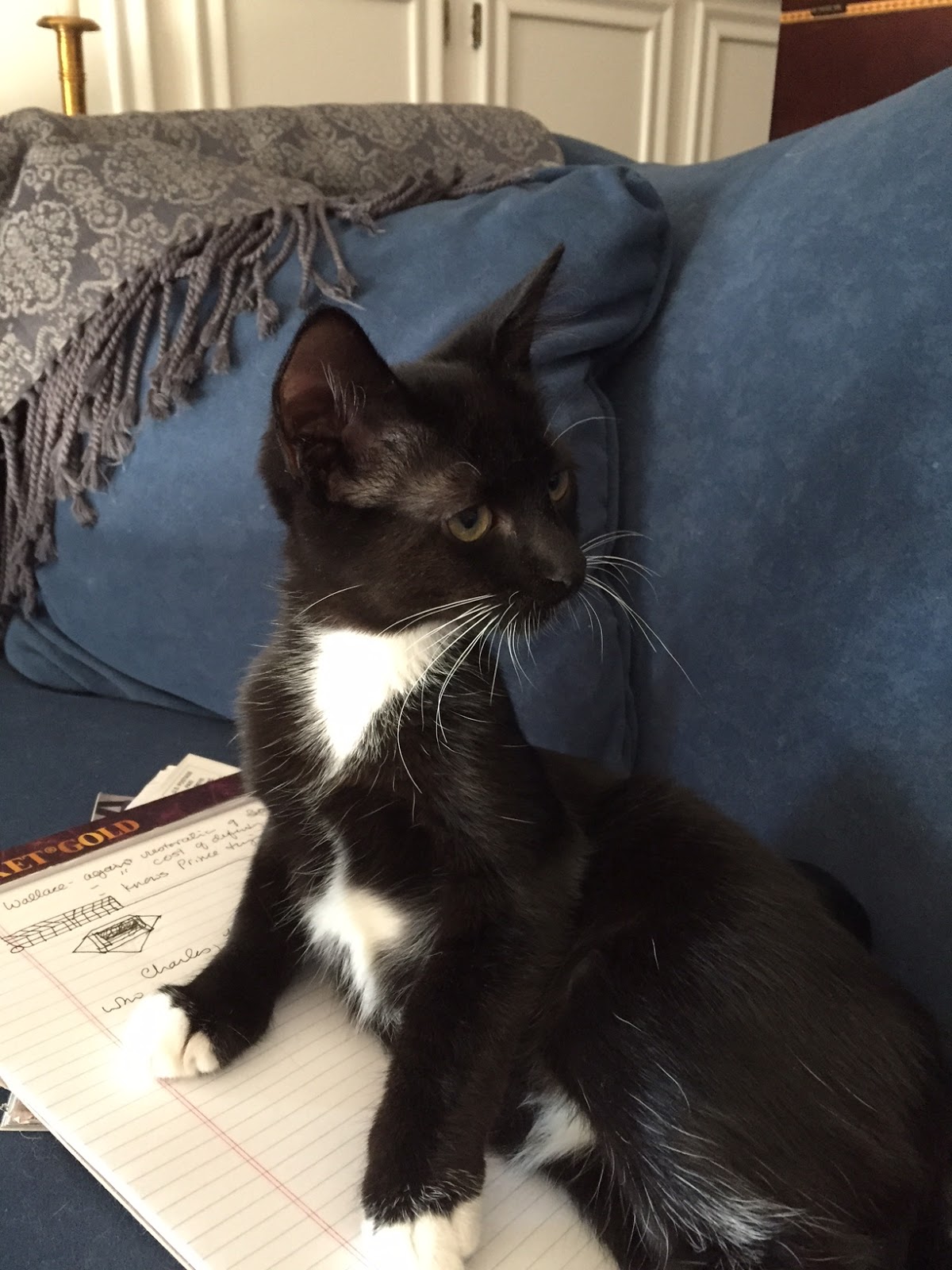 But the upshot is I have now added a dog and a holy terror of a twelve-week kitten to our menagerie. Angel is having a fit (this could never have happened if Huck were still here, because he not only really, really hated dogs, but would attack them--and any tiny kitten that came near him.) We're hoping my son-in-law will be well enough in a few months that their babies can go home. But as of now, we have a full house and a lot of unhappy critters.