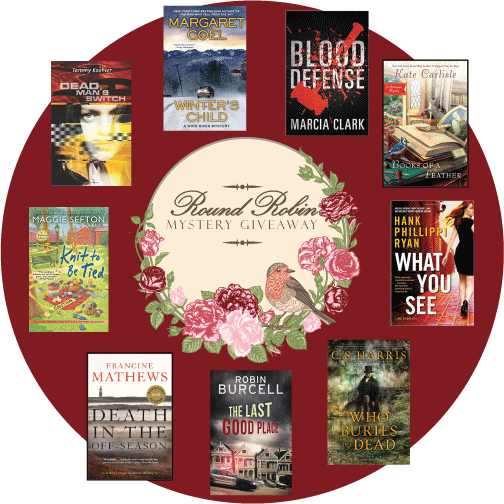 I've teamed up with eight other mystery writers to create a Round Robin Mystery Giveaway. Here's how it works: visit an author's website and enter for a chance to win a book (not that author's book; one of the other participating authors' book). You also get an entry in the grand prize giveaway, which is a complete set of all nine books. If you enter all nine contests, you'll get nine entries for the grand prize. In other words, nine readers will win one book each, and one reader will win a set of all nine books.