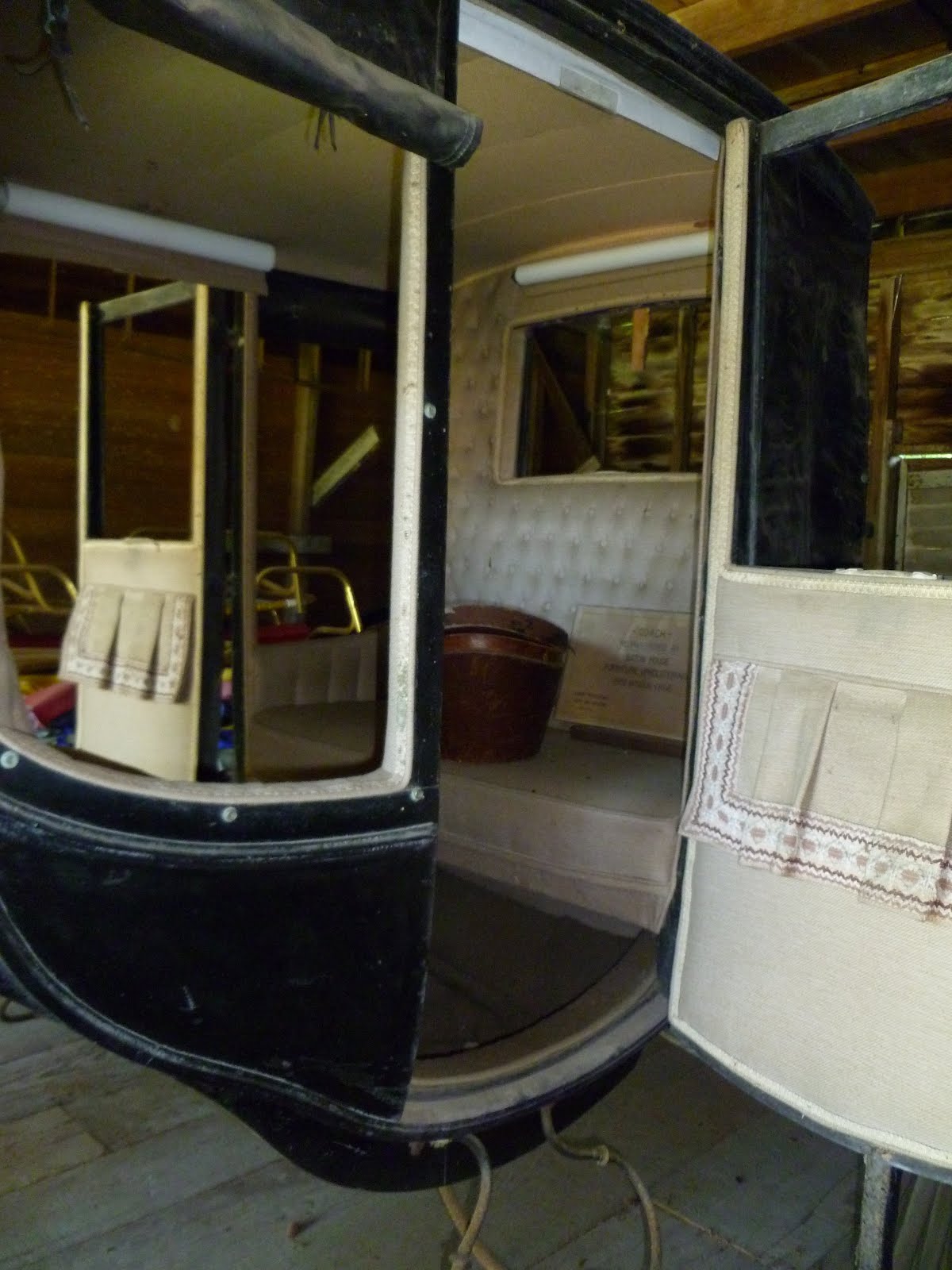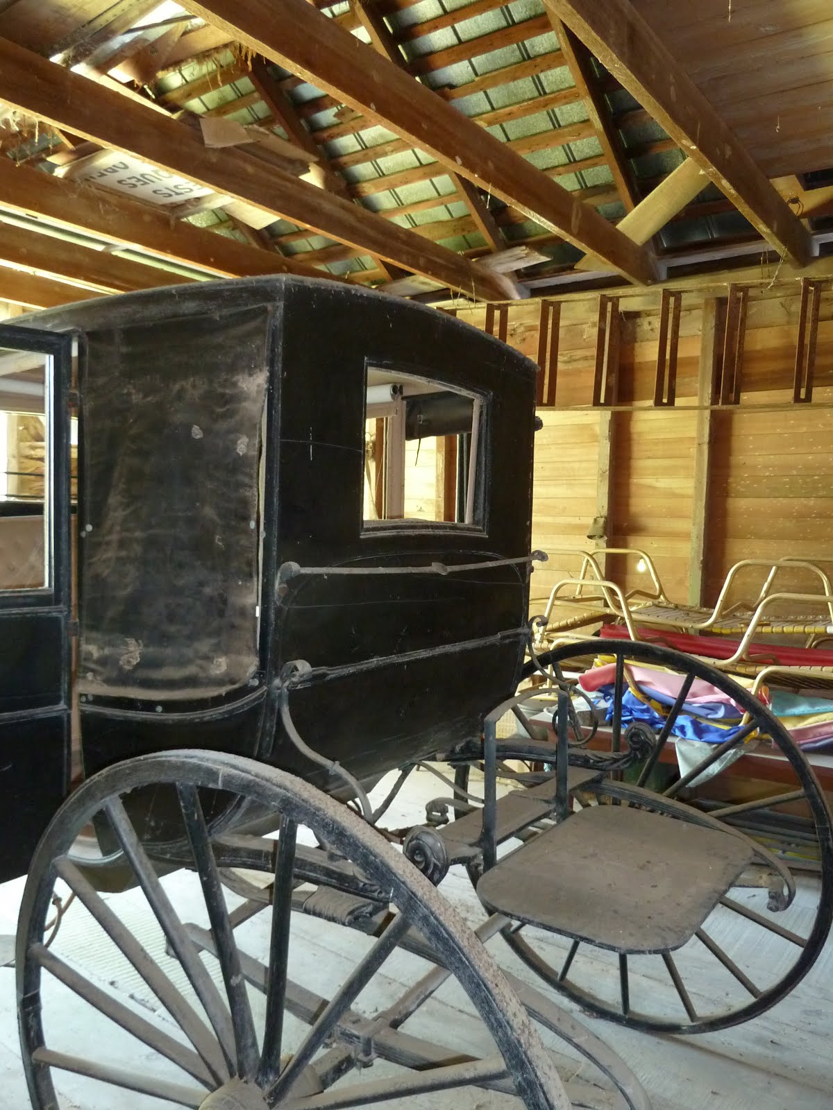 The back is interesting (ignore the junk piled behind it; this wonderfully preserved carriage is sitting gathering dust in an old barn):