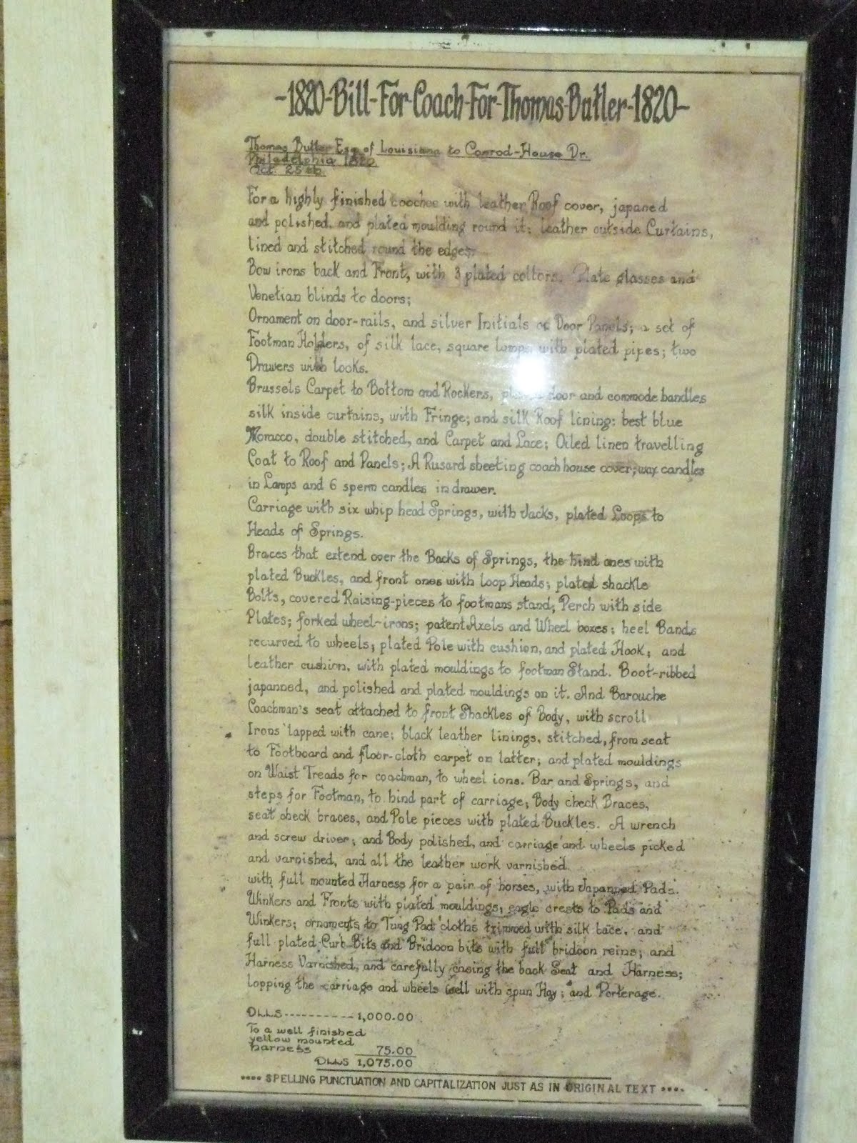 Notice the two brass lamps and the springs. And here's the bill of sale (you can click to enlarge for a better view). It makes fascinating reading.
