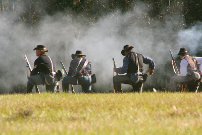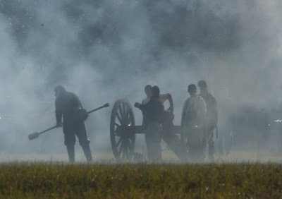 I know people who place reenactments--especially Civil War reenactments--somewhere on a sliding scale between weird and disturbing. But I find them an odd mixture of fun and profoundly thought provoking. For a writer of historical fiction, they can be fascinating. Did you know that artillery changed very little from the time of Sebastian St. Cyr to the Civil war? If you want to write about about canon fire and musket volleys, nothing beats actually hearing them.
