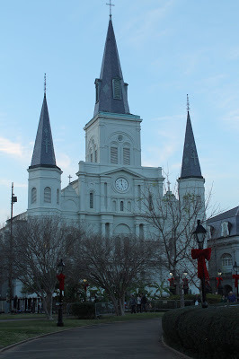 We don't often see photos of New Orleans decked out for Christmas. So come with me, and let's go for a stroll. We'll start with St. Louis cathedral and Jackson Square, the heart of the city in the days when we were a French and Spanish colony: