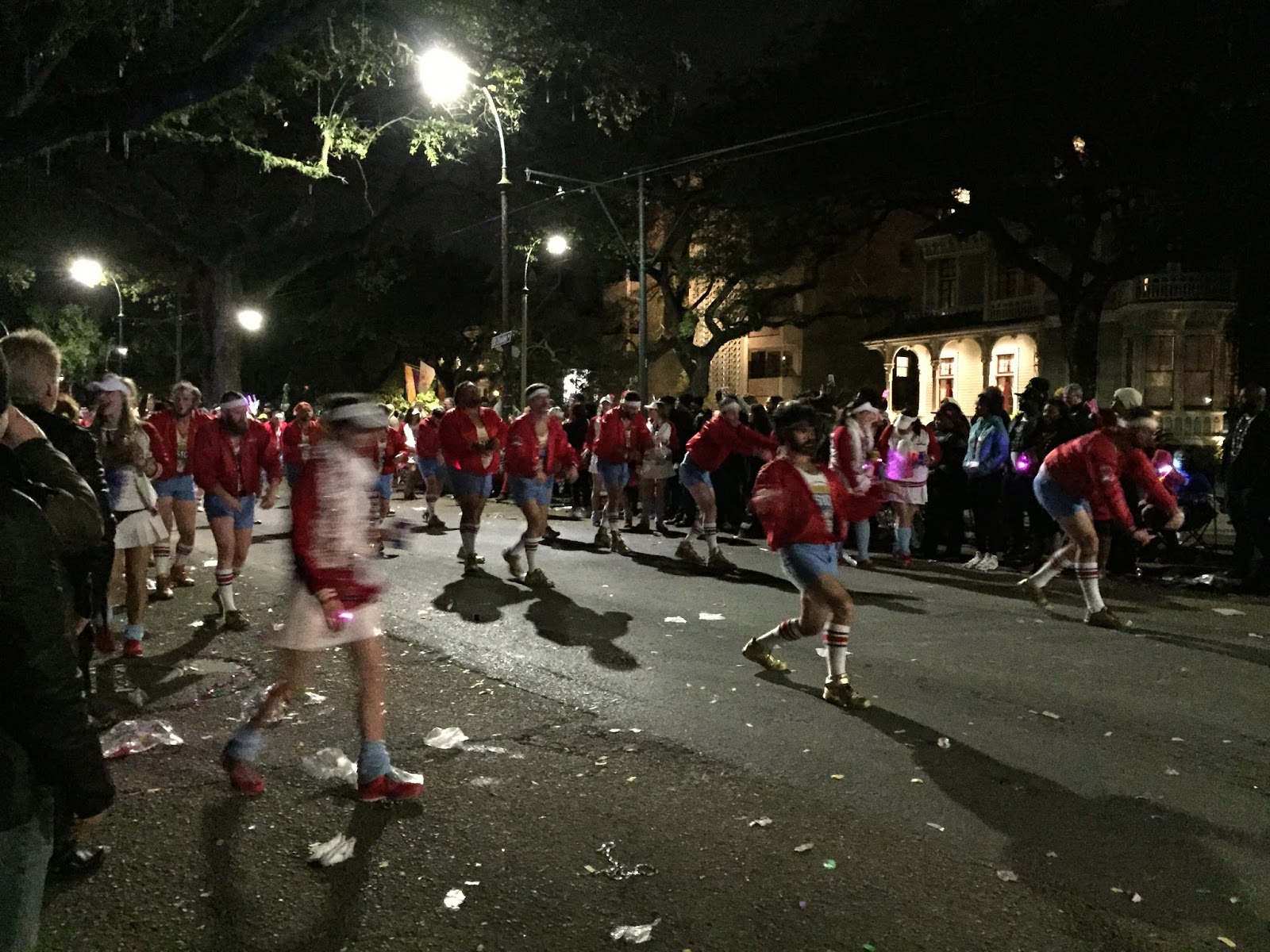 So here are some photos, including a shot of the 610 Stompers, a male marching group that is a real hoot. And at the end is a video I made for Danielle a few years ago when she was going to school down in Florida and very unhappy that she was missing all the fun. Happy Mardi Gras, everyone!