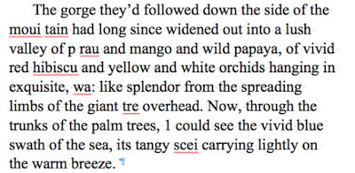 But I persevered. I've now read over the danged things so many times my eyeballs are bleeding. Do you know how hard it is to spot an "I" that has been turned into a "1"? (Actually, in the passage above, the "1" should be "she"!) And of course because I am who I am, I rewrote them a tad . . .
