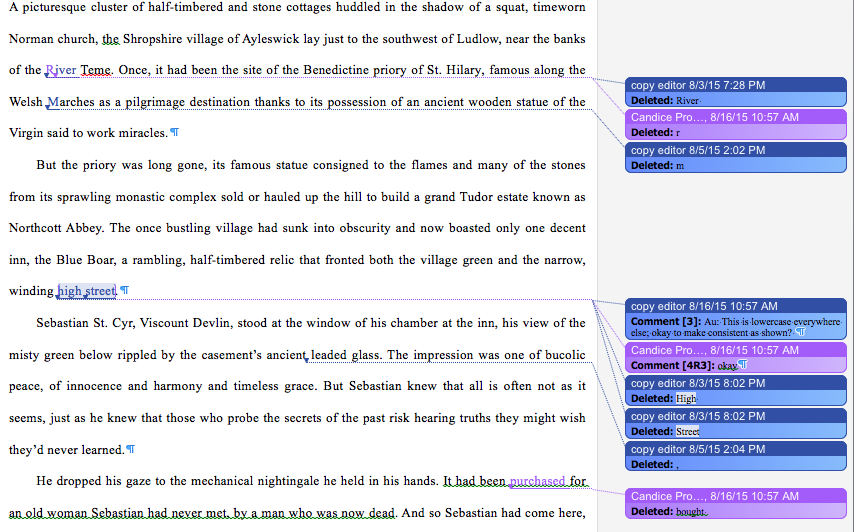 I appreciate copyeditors--I truly do. They save me from the humiliation of having the world see that I somehow typed Normand rather than Norman. They make sure Flanagan doesn't drift into Flannigan by the end of the book and that the character whose name I changed from Isabella to Grace is always Grace.