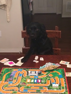 (And if anyone's curious, that's a picture of my daughter's dog playing the Game of Life. Yeah, he's spoiled. But then, he was horribly abused before she rescued him, so he deserves it.)