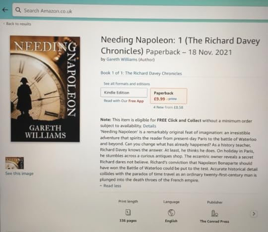 Just a quick blog to announce the appearance of Needing Napoleon as a paperback to purchase on Amazon. It has taken a while but it has happened. My editor said this would be the moment I felt like a real writer. Little does he know, that was when he rang me up and told me he really liked my synopsis!