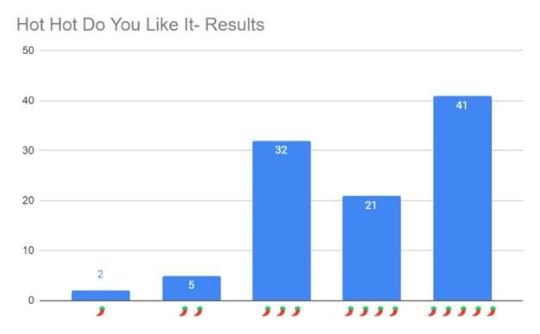 Here is the "How hot do you like it" survey results, when one pepper stands for 'clean' romance while five is 'as filthy as they come'. All glory and blame belong to my newsletter subscribers:
