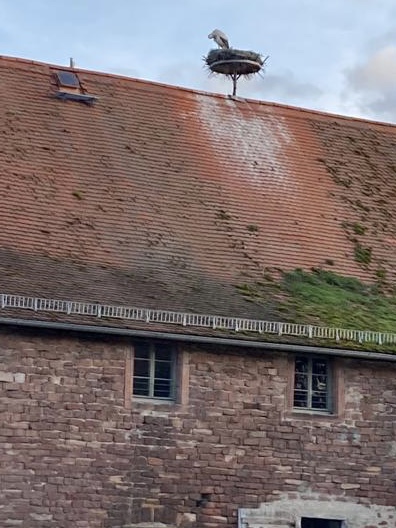 My dear German friend sent me these photos this morning. My mother’s beloved storks have just returned to Stockstadt. When my mother was a child, she would say good-bye to the birds in the fall when they migrated to Africa. Every spring, she would wait for them to return. She could recognize some of the birds and she even named them.