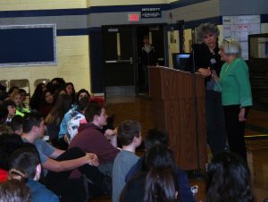 The presentation tied in with the students’ studies of the Holocaust in Language Arts and World War II in social studies.