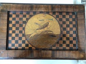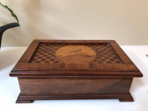 Last week, she gave it to me. I carefully examined it, with its inlay of different woods and a fading image on the top.
