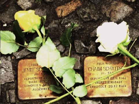 Sorrow and joy are closely tied together in such an installation. Sadness, because it is abhorrent to torture people because of their Jewish origin and kill them. And joy, because here at this point, it is a long time ago, and we want to pay our respect to the victims.