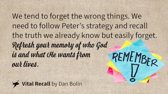 We tend to forget the wrong things. We need to follow Peter’s strategy and recall the truth we already know but easily forget. Refresh your memory of who God is and what He wants from our lives. Remember not to forget virtue, knowledge, self-control, steadfastness, godliness, brotherly affection, and love.