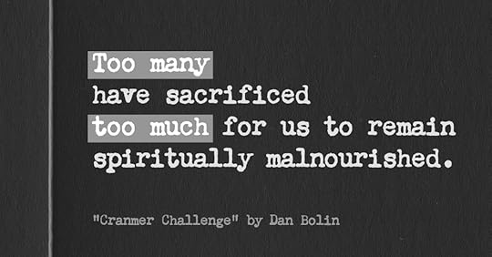 Too many have sacrificed too much for us to remain spiritually malnourished. Because of Cranmer and others, a healthy helping of the Word of God is readily available. Feed yourself on scripture, enjoy seconds, and gain the spiritual sustenance it provides.