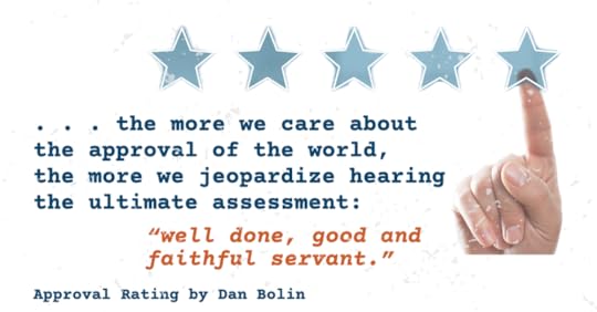Oddly, the more we care about the approval of the world, the more we jeopardize hearing the ultimate assessment: “well done, good and faithful servant.” (Matthew 25:21)