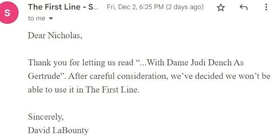 I’ve just finished writing two new short stories. They’re called, “The Pain of Returning” and “…with Dame Judi Dench as Gertrude”.