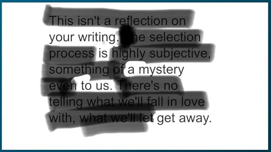 Receiving rejection notices from literary agents or literary journals never gets easier. It’s all part of the process, but the stories your mind tells you after each form letter are truly dark and try to convince you to stop writing, to stop fooling yourself. Those thoughts are summed up like this (click image below for more of these poems):