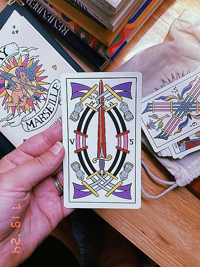 Magical breadcrumb moment — I’ve pulled the 5 of Swords before in my time with The Gay Marseille, but I was shocked to see the phrase in the guidebook because I’d just looked it up after seeing it in a fandom-related context. If you’ve been my inbox pal for a while, you may already know I’m a fanfic junkie, but as I’m hosting a writing workshop next Thursday on mending your relationship to creativity through fanfiction, I’ve been sharing about fandom love more publicly on social media! It’s been nerve-wracking and juicy!