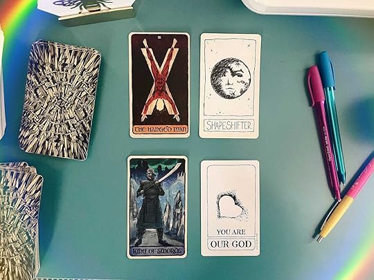 FEBRUARY 2024: Top Row - (left to right) The Game of Thrones Tarot by Craig Cross and Liz Dean, Postcards from the Liminal Space. Bottom Row - (left to right) The Game of Thrones Tarot, The Morgan’s TarotOur cards for February 2024 are…12 - THE HANGED ONE with SHAPESHIFTER