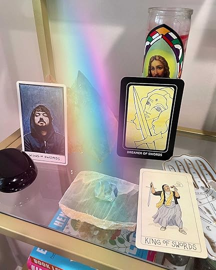 THE KING/DREAMER OF SWORDS: (left to right) That 90’s Tarot (Aesop Rock) by Kristi Prokopiak, The Dreamer’s Tarot by Marcella Kroll, Fifth Spirit Tarot by Charlie Claire Burgess.The King of Swords rules over the dodgy dominion of the mind—the most fickle of gatekeepers; sphinxes with the keys to nirvana, if you can only solve the riddle!—and this month, it stands tall beside a powerful and peculiar friend: YOU ARE OUR GOD.
