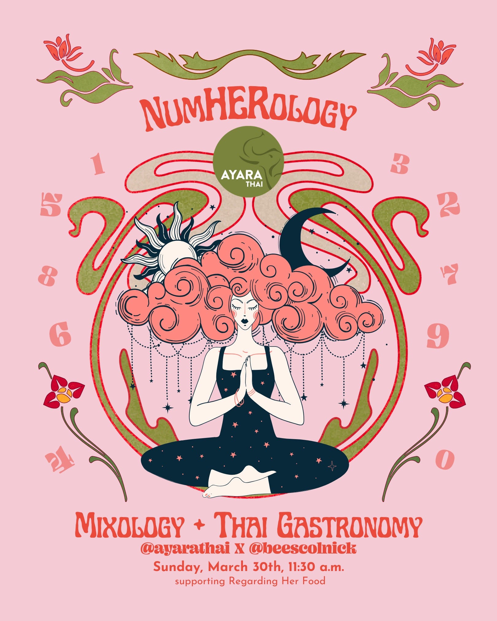 Ayara Thai is hosting a one-day brunch event celebrating women, food, and hope in support of the non-profit Regarding Her Food and Women’s History Month! Sisters Chef Vanda and Chef Cathy Asapahu thought it would be fun to curate a numerology-inspired menu, where guests can enjoy cocktails, mocktails, and Thai cuisine, based on their Life Path numbers. I will be there, leading a talk-shop about the history and practices of numerology, how to calculate your core chart, and what it all means. You’ll leave with full bellies and full hearts, understanding what your personal numerology means for the year ahead.